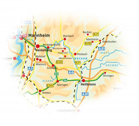 Richtung Mannheim/Heidelberg nehmen Sie die Neckarstraße B 37 in